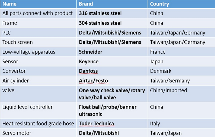 1. Материалът на всички части, през които преминава продуктът, може да бъде оборудван според характера на продукта, така че материалите са идеални за запълване на повечето продукти, силно корозиращи.