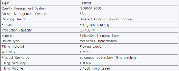 Име: автоматични ротационни машини за пълнене и затваряне на бутилка с маслена течност